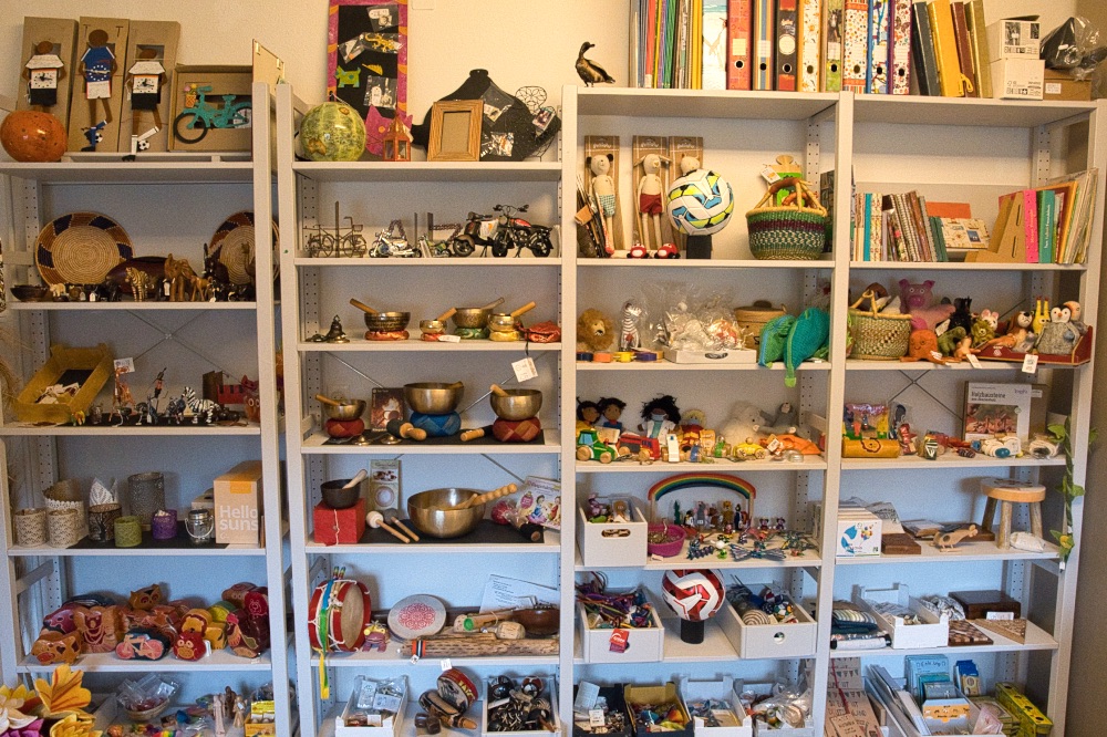 Regal mit Kunstgewerbe im Weltladen